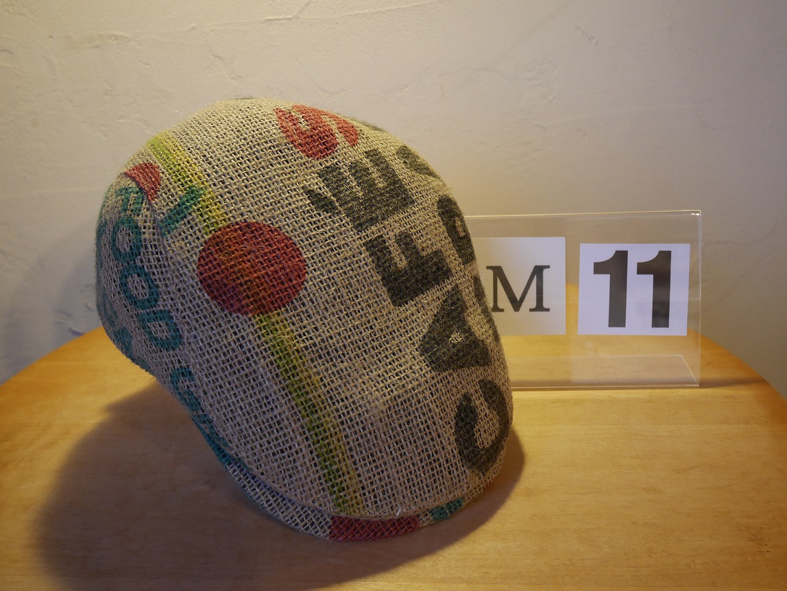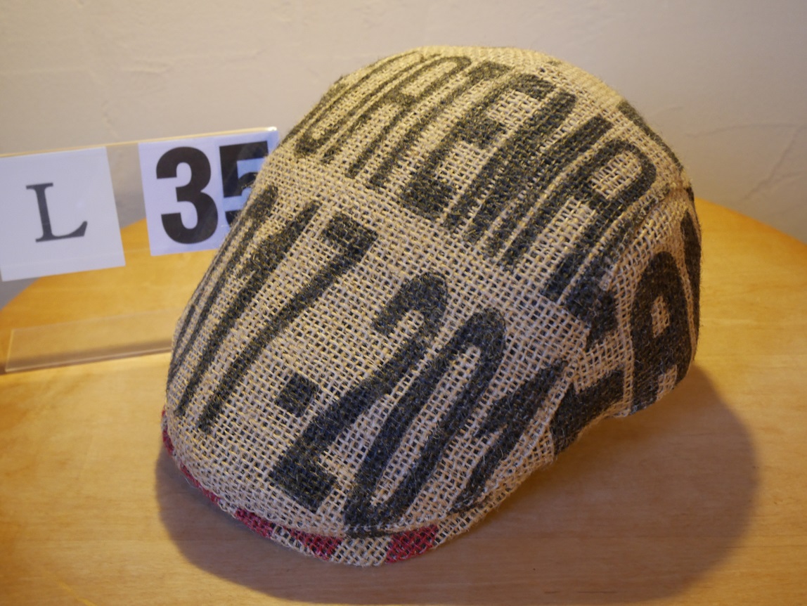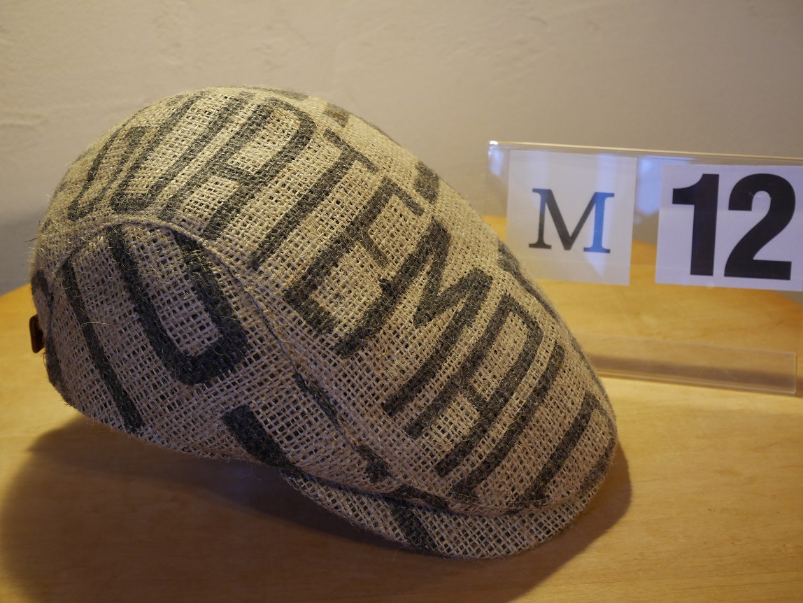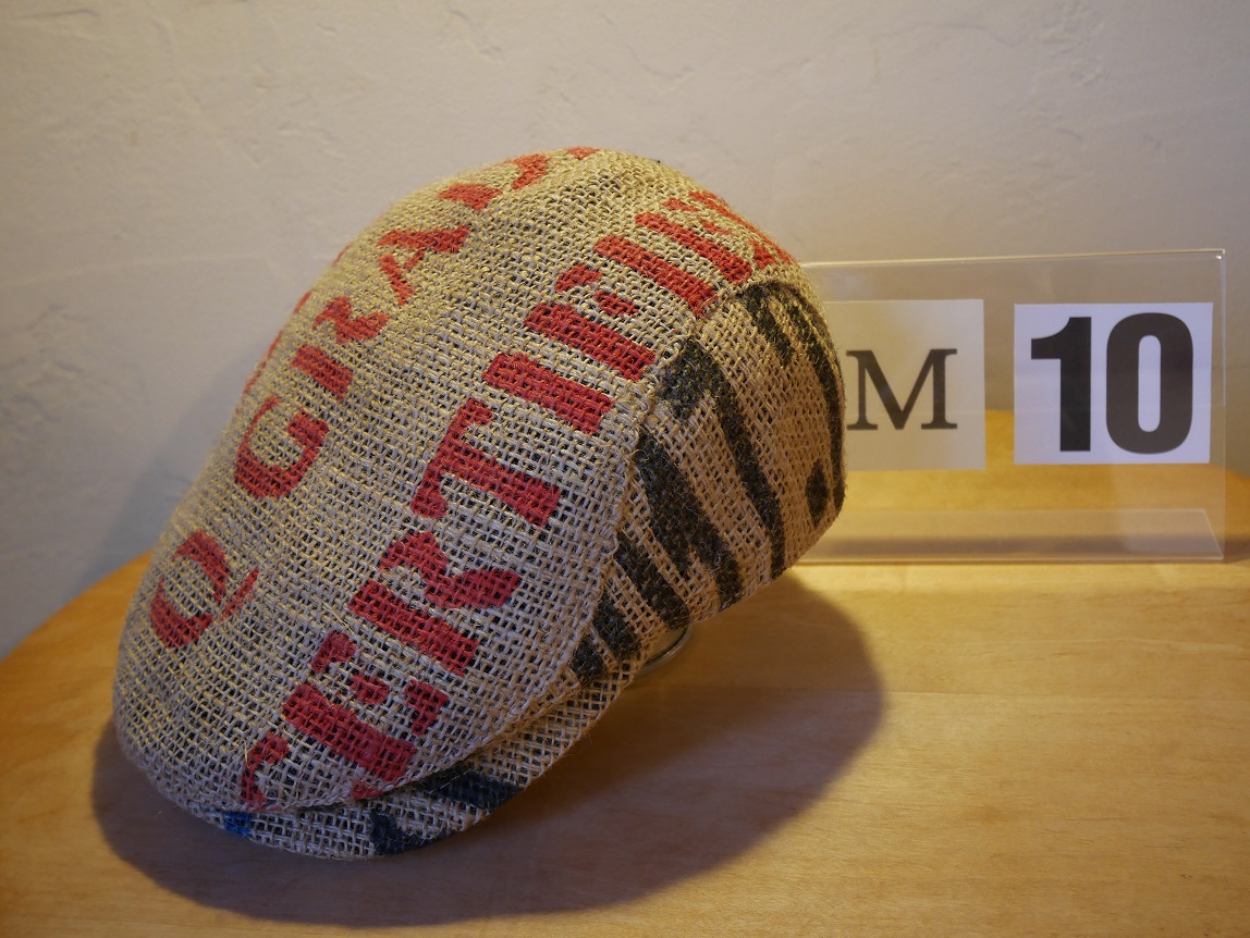 北工房では、生豆の麻袋を再利用して、オリジナルのハンチング帽を制作しました。