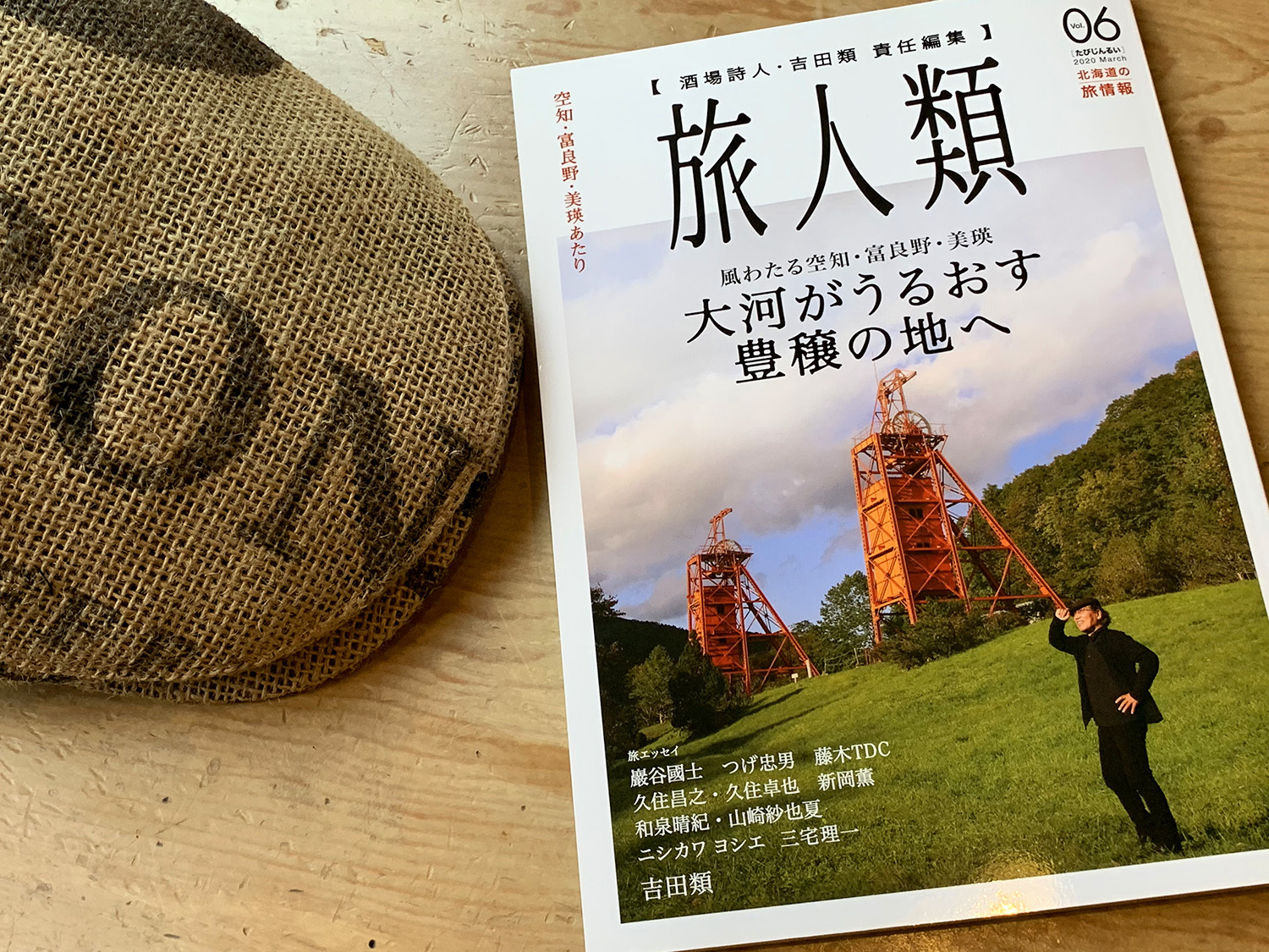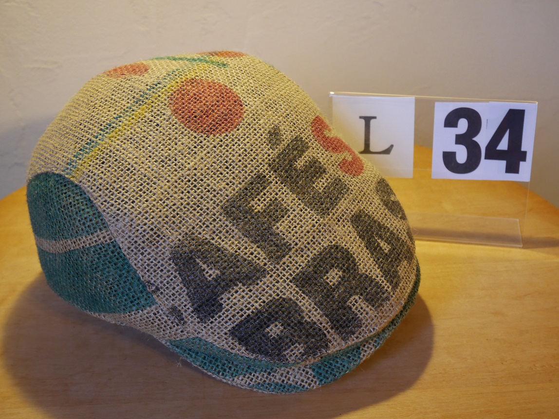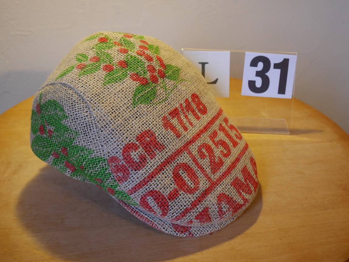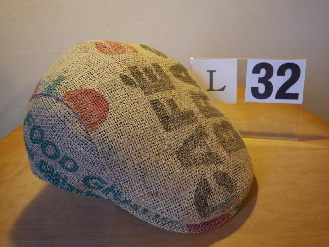 北工房では、生豆の麻袋を再利用して、オリジナルのハンチング帽を制作しました。